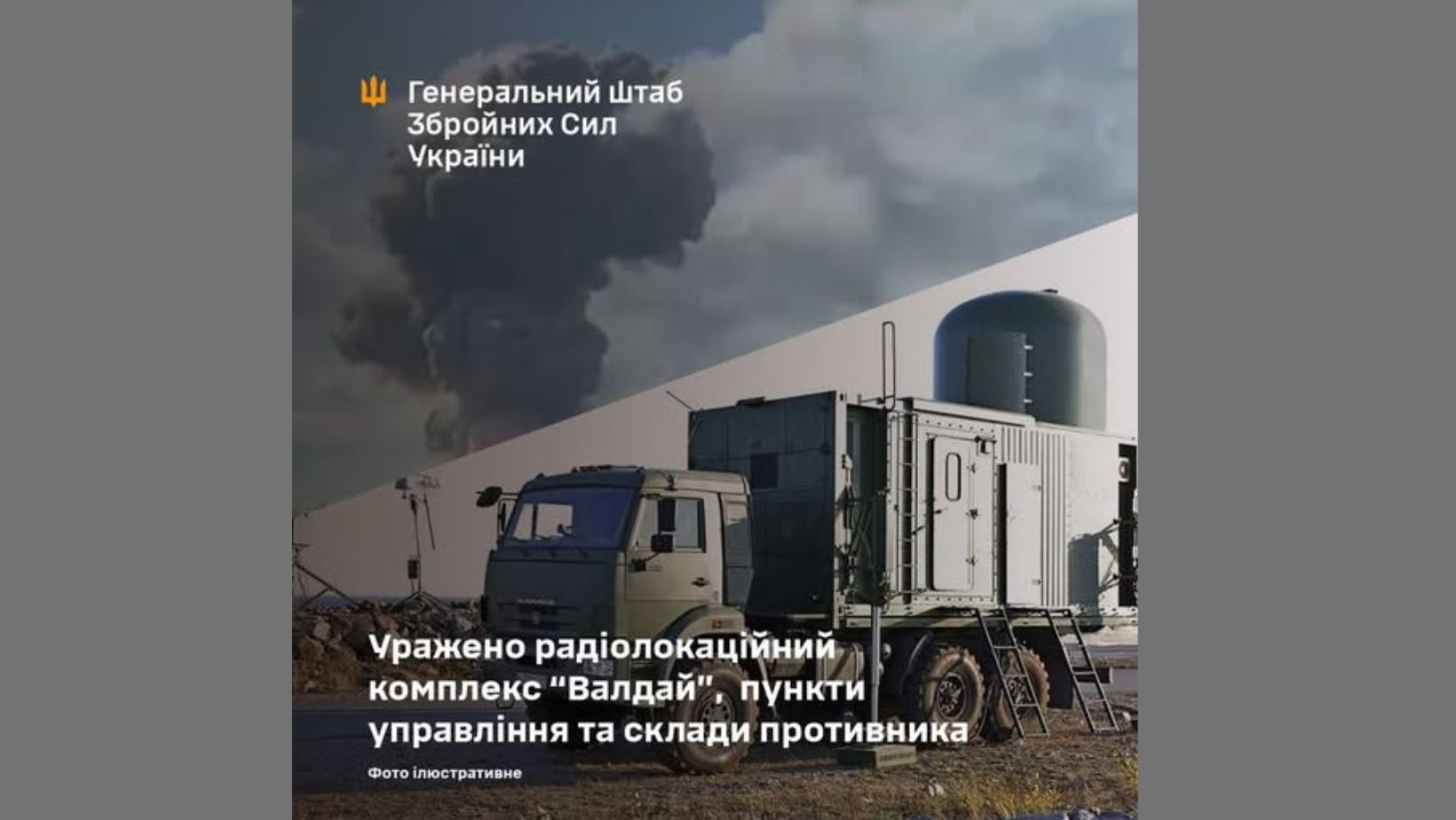 "У ніч на 27 березня Сили оборони України уразили російський радіолокаційний комплекс “Валдай” у районі Гвардійського на тимчасово окупованій території АР Крим. Цікавим є те, що комплекс має виявляти та протидіяти малорозмірним БПЛА", - зазначили у Генштабі.